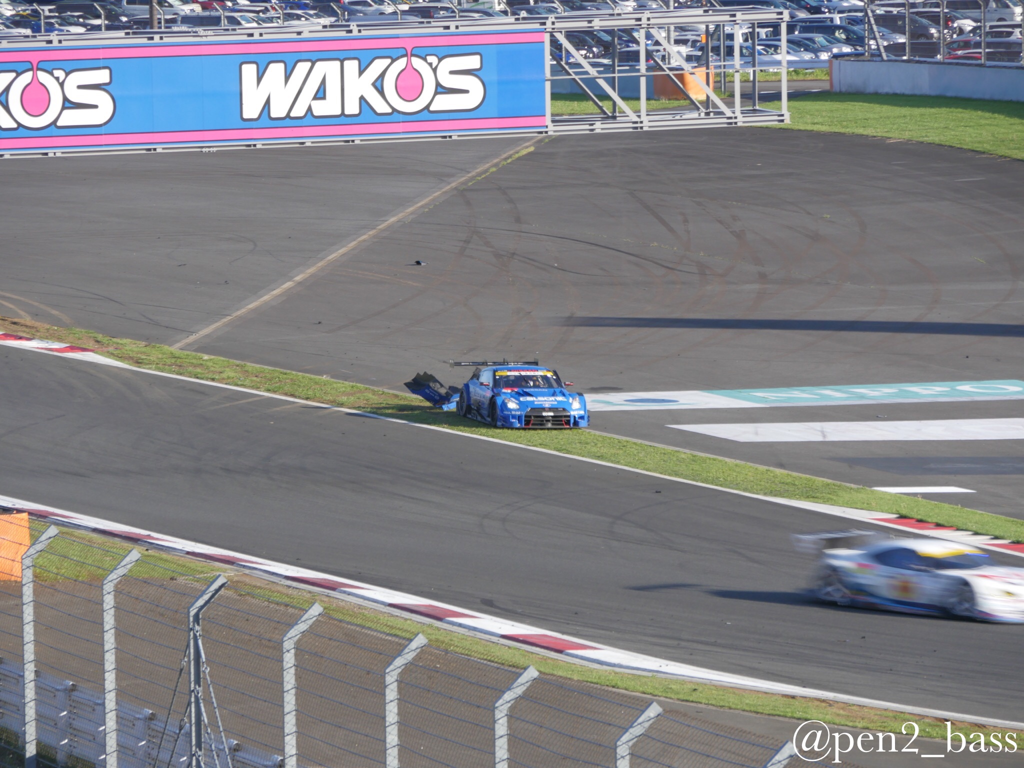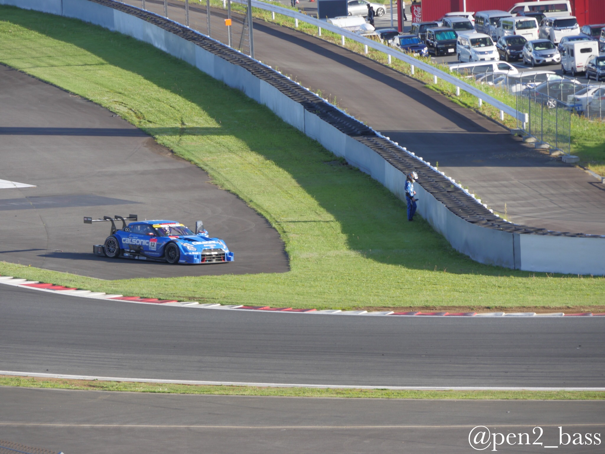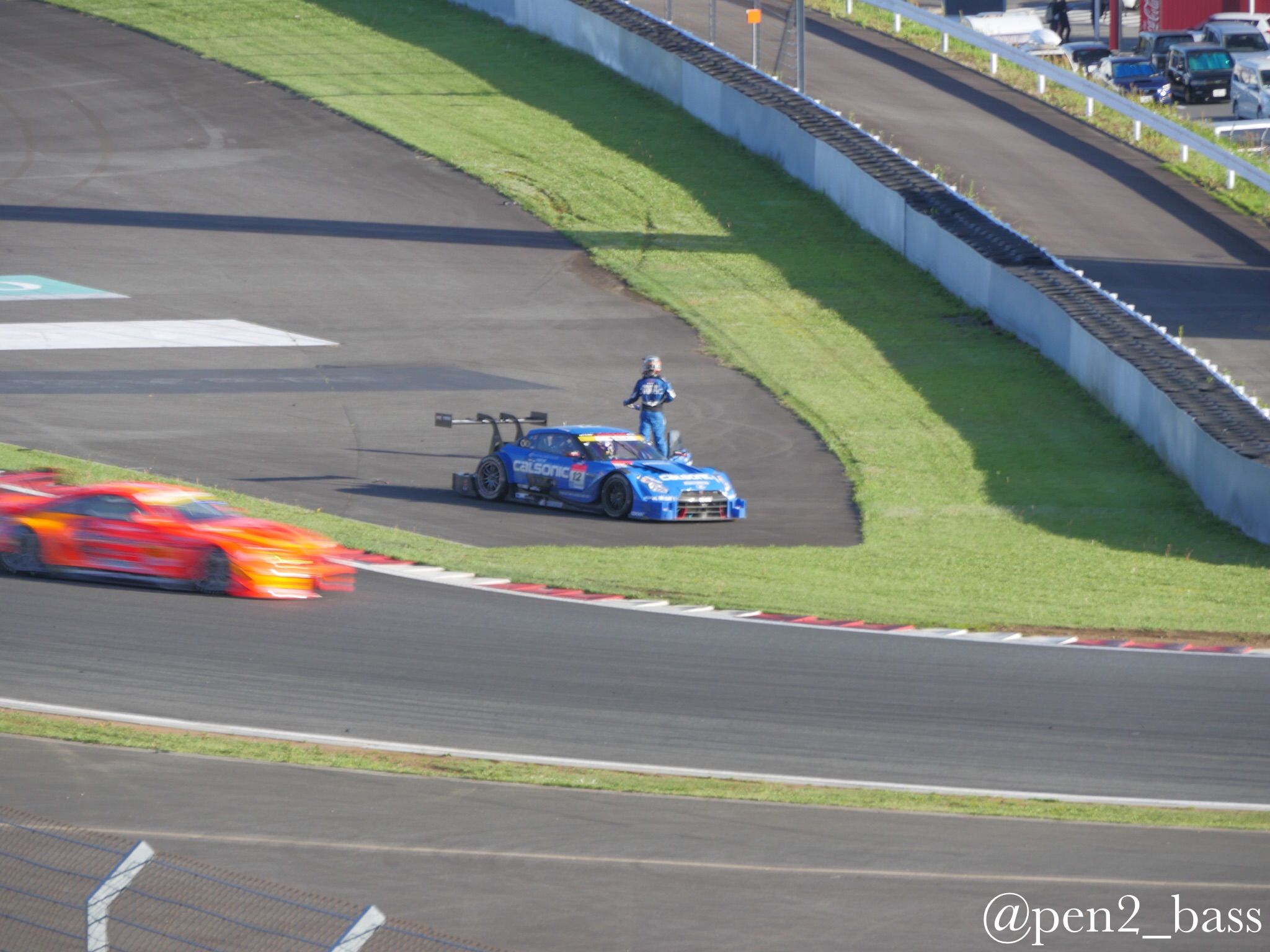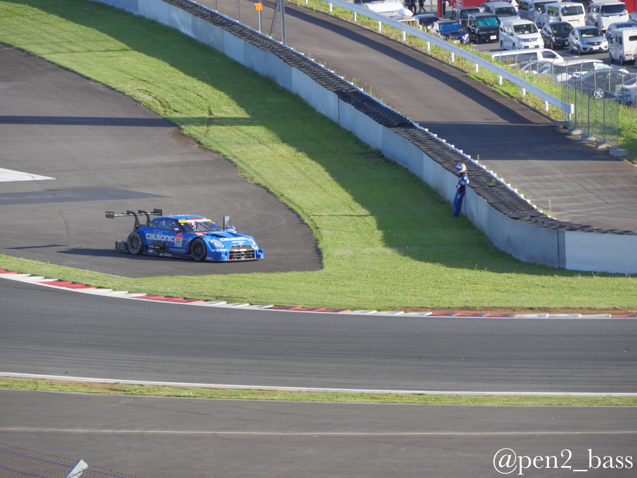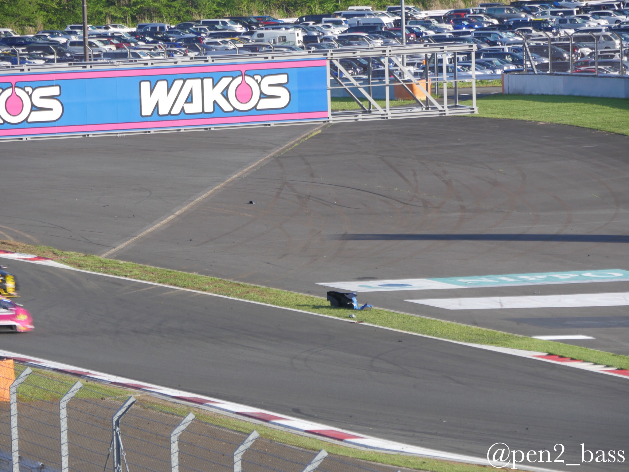 SuperGT Rd2富士行ってきた6 モタスポ 2016年05月18日 0 5月頭の話題なのに写真が多くてまだ引っ張ってます(笑)グランドスタンド裏で催し物を見た後は再びパドック側へ移動ヘアピン(アドバンコーナー)前で写真を撮ってました。 この日は軽量化装備で行ったのですが、やっぱり三脚は欲しかったなと思いつつ、サーキットでは望遠も欲しいとつくづく思うのでした。そんな中、レースも終盤にさしかかり、セーフティーカーやピット時間のあやもあり、1位のカルソニックGTRと2位のモチュールGTRがデッドヒートカルソニックのJP・デ・オリベイラ選手は過去のシーズンドライビングの荒い危険な?ドライバー的イメージが強かったのですが、最近は物事を俯瞰したレースが多くこの日一番の注目度。そんな中目を疑う光景が!?!?!? なんてこった!トップのカルソニックが100Rでタイヤバースト!走行継続出来ない状態に・・・ オリベイラ選手も力なくマシンを降りてしまいます。。。残されたパーツ 通り過ぎる1号車モチュール 落胆のあまりピットに戻らず座り込んでしまうJP、、、結局レースはモチュールが優勝。 レースはこんな事も起こります。実はこの後、ちょうどピットに戻ってきたJPとバッタリ出くわしてしまったのですが、何も出来ずというか構えてたカメラを降ろしてしまいました、、、カルソニックの監督と言えばご存知、闘魂星野一義監督。事件が起きた直後、レースが終わる前にサーキットを後にしてしまいました。。。その後、ある程度落ち着いた状態で日産陣営で話し合いをしておりました。 いや〜辛かった。。。もう一度スタートの勇姿をみてみますか。。。続く ------------------------[info]-------------------------------- ■YouTube大幅リニューアル!! →チャンネル登録 ■バンド活動 https://dokuro9.com/ 新ボーカル加入!! ~Live~ ・7月は準備期間 ■音楽教室やってます! レインボーミュージック 高田馬場 無料体験レッスン受付中!! http://rainbowmusic-tbaba.com/ ギター、ベース、ウクレレ、ボイトレ ベースレッスン担当中 【お得】機材安く買うならココ↓ [0回]PR