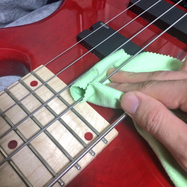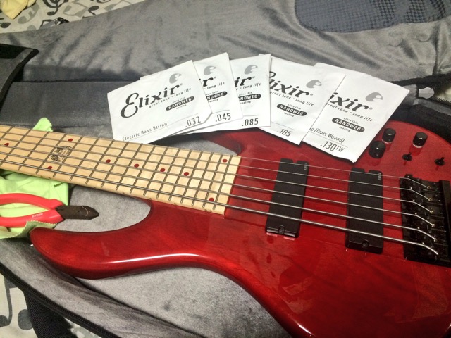 「ちなみに弦を交換する時に全て同時に外すか一本ずつかと分かれるところですが、通常ベース張力は100㎏以上。6弦となれば相当なもの。ネックへの急激な変化をさせないって理由で一本ずつ変えてます。好みかもしれないけど。 」
